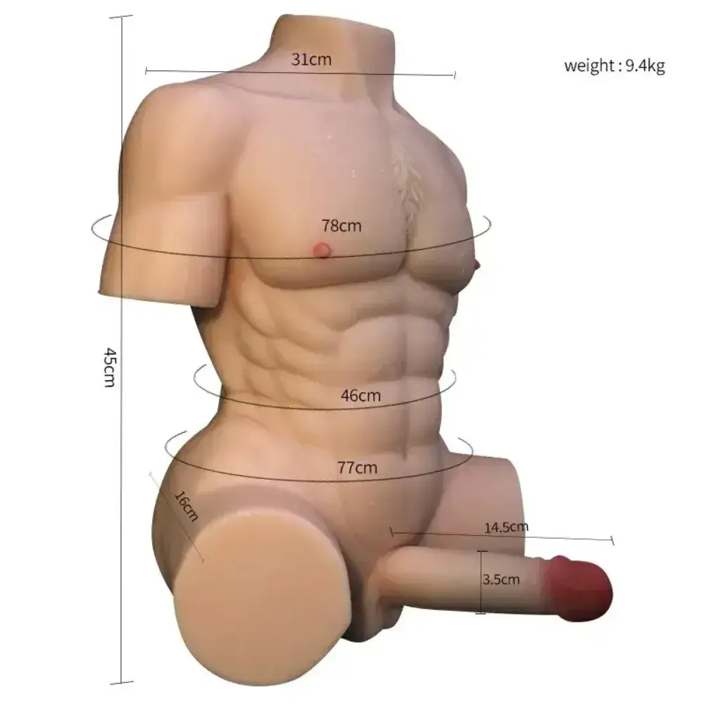 💪 Trọng lượng 9.4kg, mô phỏng cơ thể nam giới với cơ bụng 6 múi sắc nét và tỉ lệ chuẩn.