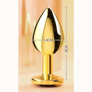 PLUG INOX VÀNG CHUÔI TRÒN ĐÍNH ĐÁ ĐỎ – SIZE M (3.4CM X 8CM)